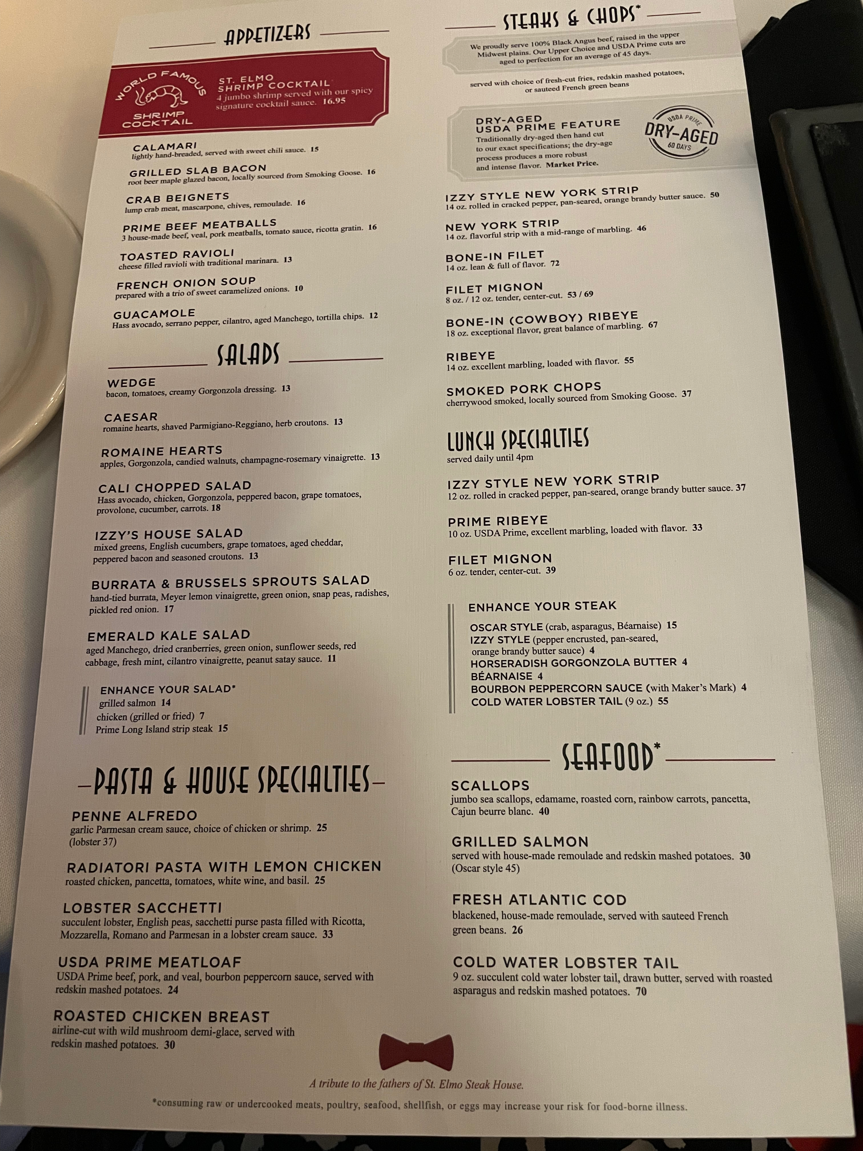 With the helpful insight of some friends well acquainted with Indy’s best, my husband and I jumped straight into it with a dinner reservation at Harry & Izzy’s, coined as a more casual sister restaurant to St. Elmo Steakhouse. The restaurants are more than just owned by the same proprietors, they are neighboring restaurants, which begs the question if they even share kitchens?
