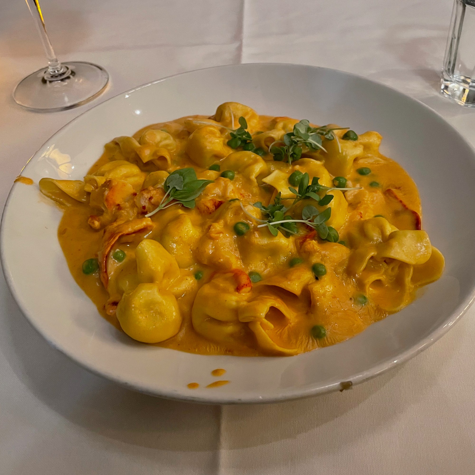 I ordered the Lobster Sacchetti, a cute little pasta stuffed with cheeses, topped with a serious serving of lobster, green peas, and a rich cream sauce. The pasta reminded me of more decorative tortellini. This pasta was perfectly rich, yet light.